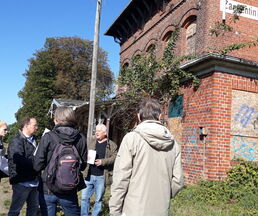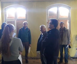 Die bereits dritte Begehung des alten Bahnhofs. Der Denkmalschutz kam zur Sichtung. Frage und Antwort wurden dabei vom Bürgermeister Klaus Draeger, Dirk Schiewer Fachamtsleiter Regionalplanung, Daniel Böpple Architekt des Projektes und Maxi Semrau stellv. Vorsitzende vom JuPaZ gestellt.