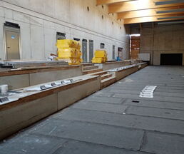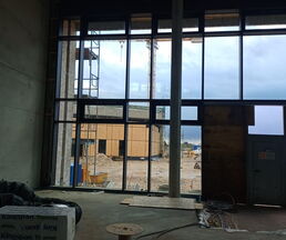 Die Grundschule/Hort wurde rohbauseitig fertiggestellt, die Abdichtungsarbeiten des Betonrohbodens im Erdgeschoss und des Betondaches werden zurzeit ausgeführt. Seit dem 21.02. werden die Fenster im gesamten Gebäude eingebaut und der Einbau der Pfostenriegelfassade einschließlich Verglasung hat begonnen Der Trockenbau hat mit den Unterkonstruktionen der Trockenbauwände begonnen und in den Technikräumen werden Wände und Decken im Vorfeld der Rohinstallation der Haustechnikgewerke gestrichen.