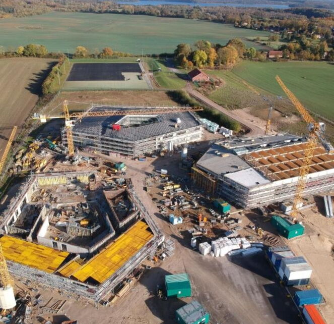 Im Bereich des zentralen Campusgeländes wurden die Arbeiten der technischen Erschließung der Gebäude wieder aufgenommen. Schmutz- und Regenwasserkanäle wurden ergänzt und mit der Aufbindung der Dachentwässerungen der Regionalen Schule und der Zweifeldsporthalle mit Mensa wurde begonnen. Daran anschließend erfolgt im Zuge der Geländeerhöhung (+ 60 cm) die Verlegung der Medien Gas, Trinkwasser und Strom, für Breitband und Datenleitungsverbindungen der Gebäude untereinander werden Leerrohre verlegt.