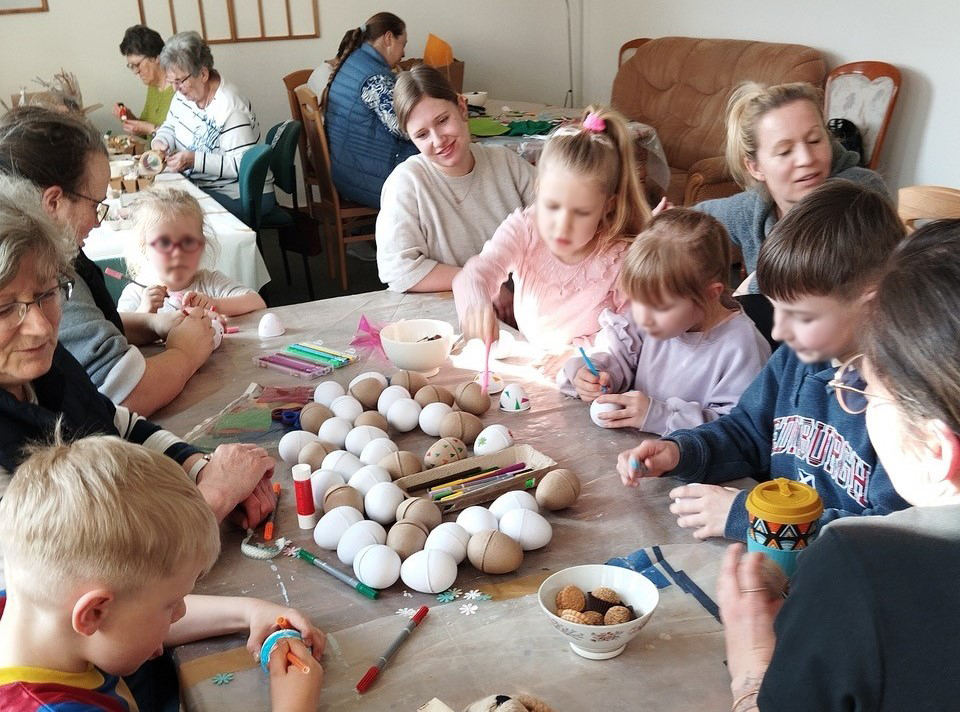 An fünf Bastel-Tischen konnte man zwischen unterschiedlichen Angeboten auswählen – oder einfach die ganze Runde durchbasteln! In gemütlicher Atmosphäre wurde intensiv „gewerkelt“: bemalte Eier für den Osterstrauch, Tisch- und Fensterdekoration oder kleine Ostergeschenke.