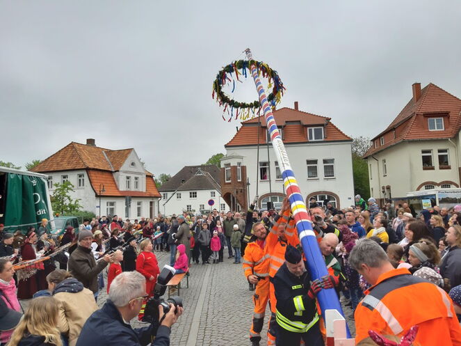 Schön lackiert von Malermeister Ilja Förster kann man den schön geschmückten Maibaum in den nächsten Wochen bewundern. Bürgermeister Klaus Draeger möchte einfach nur Danke sagen.