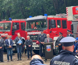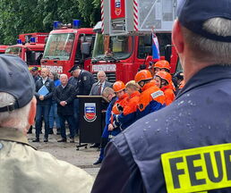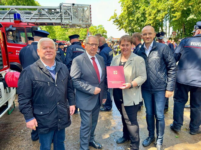 Landwirtschaftsminister Dr. Till Backhaus ließ es sich nicht nehmen mit Landrat Stefan Sternberg das Fest zu besuchen. Orts- und Gemeindewehrführer Jens Arndt und alle Kameraden freuten sich sehr über den hohen Besuch.