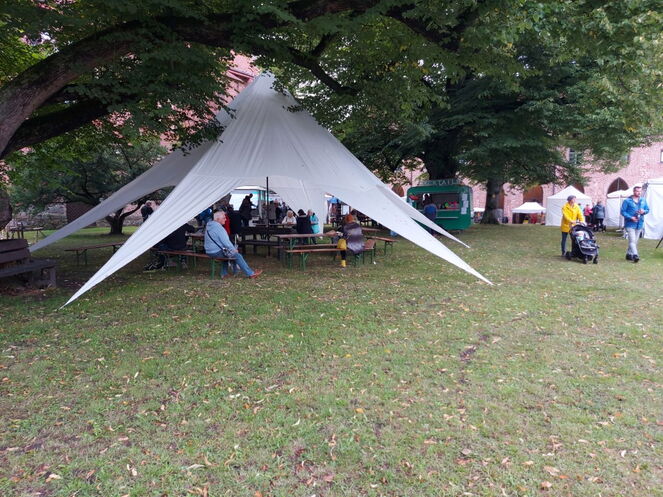 Am Samstag begann der Tag gleich mit starkem Sprühregen und nur sehr zäh kamen die Ersten Besucher durch die Eingangstore. Ab 13.00 Uhr dann ein Lichtblick, zwei Stunden blieb es trocken und die Fläche um Kloster und Kirche füllte sich.