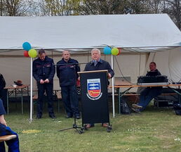 Bürgermeister Klaus Draeger war natürlich als Ehrengast geladen und ergänzte in seiner Rede, den Dank der Kameraden, für die gute Jugendarbeit und die ehrenamlichen Einsätze bei den städtischen Veranstaltungen.
