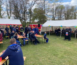 Jens Arndt Hauptbrandmeister und Orts- und Gemeindewehrführer bedankte sich bei Bernd Schwan für die jahrelange Treue. Auch alle anderen Wehren der umliegenden Orte wie, Kogel, Gallin, Bantin, Lassahn, Kölzin und Lüttow-Valluhn waren in Uniform angetreten um dieses schöne Ereignis zu feiern.