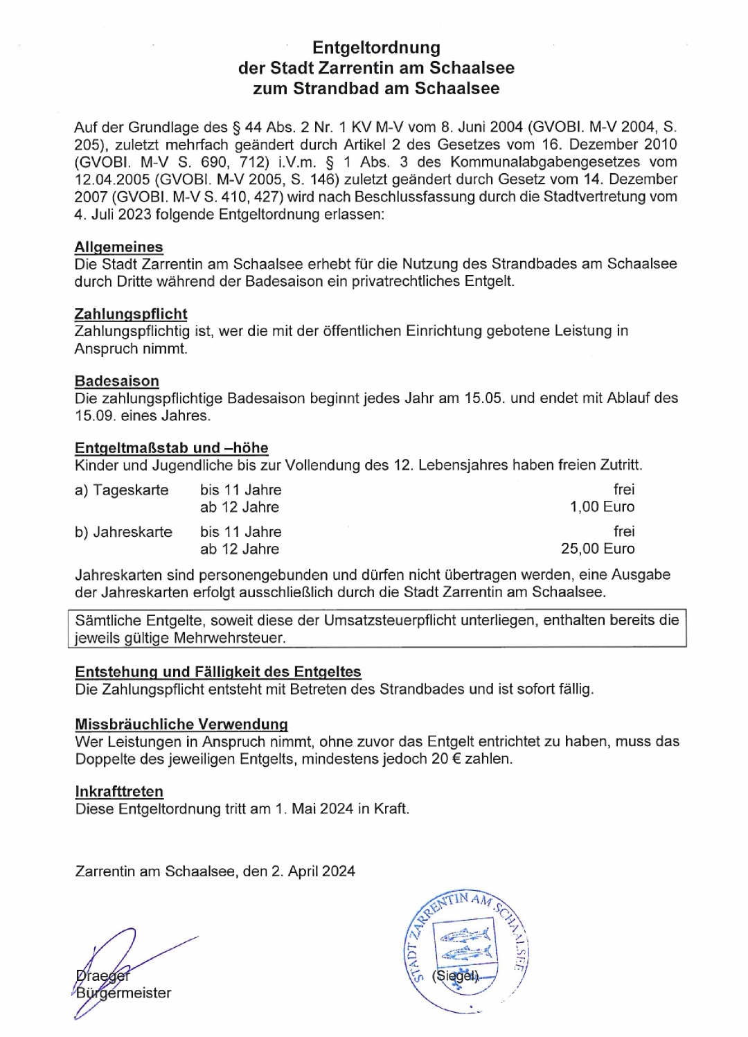 Liebe Zarrentiner, Gäste und Besucher, die Kassierung am Badestrand in Zarrentin verzögert sich noch um ein paar Wochen!