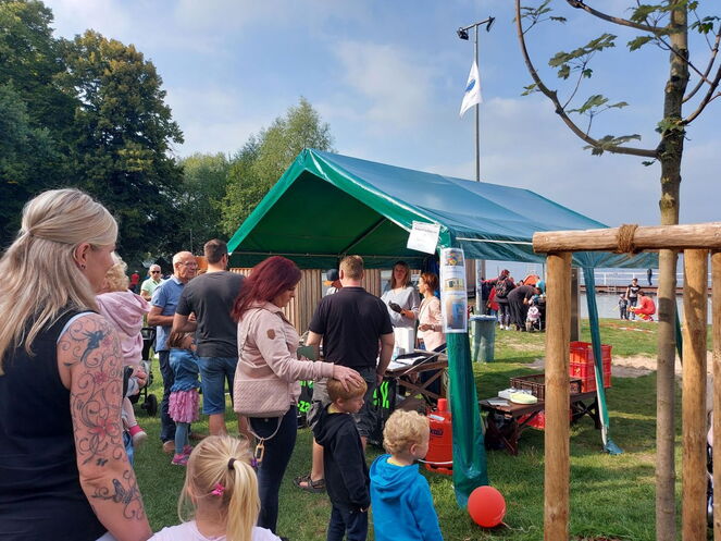 Mit so einem Andrang hatten die Organisatoren nicht gerechnet, waren doch schon nach einer Stunde die Stempelkarten für den Aktionsparcours aufgebraucht, nach einer weiteren wurde auch der Kuchen bei der Jugendfeuerwehr knapp und auch die Bratwurst vom Grill des Schulvereins erfreute sich großer Beliebtheit. Die Brötchen dazu spendierte Bäckerei Puhlemann aus Karft und das Seecafé Ickert.