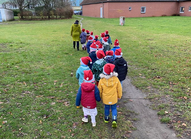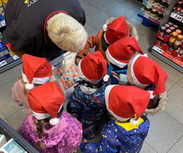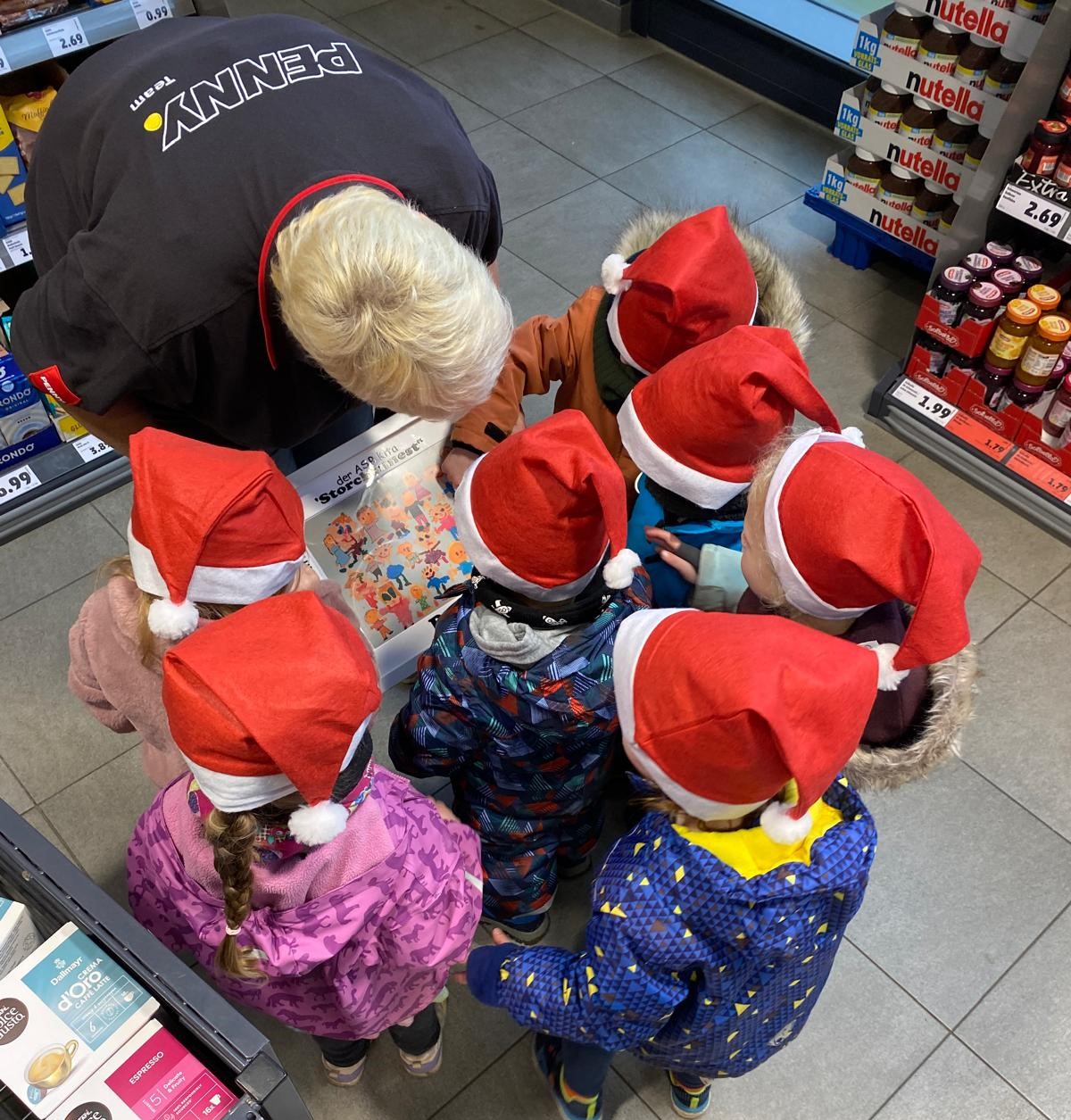 Einige Kindergartenkinder der ASB-Kita „Storchennest“ überraschten als kleine Wichtel ortsansässige Firmen und Unternehmen mit einem Besuch und überreichten ein gebasteltes Geschenk im Namen unserer Kita.