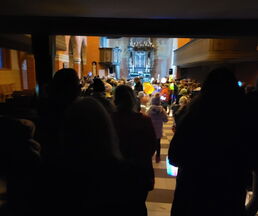 Dort wurden dann die gebastelten Laternen der Kita Stochennest aufgestellt.