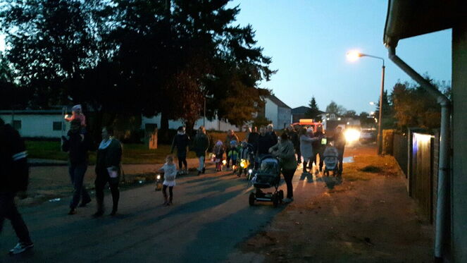 Am Freitag den 6. Oktober erfreuten sich mehr als 300 Kinder und Eltern an dem von dem Musikzug der Freiwilligen Feuerwehr Sterley begleiteten Laternenumzug der Kita Storchennest.