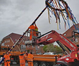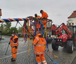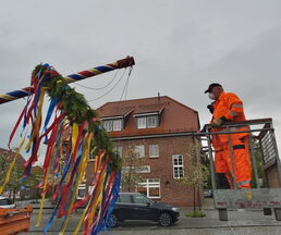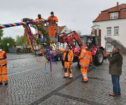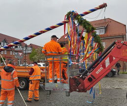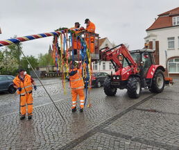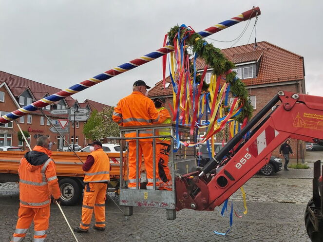 Unter strengen Hygienemaßnahmen hat der Zarrentiner Bauhof heute den Maibaum auf dem Marktplatz aufgestellt. Ein bisschen Farbe und Hoffnung für die Bürger und Bürgerinnen in dieser eigenartigen Zeit. Bürgermeister Klaus Draeger ließ sich von der schlechten Wetterlage nicht abschrecken, dabei zu sein.