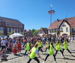 Neben den "TSV Empor" Powerdance-Gruppen Mini und Midi mit Tanzlehrerin Iris Knaack, hatte auch Trainerin Dajanis mit ihren "Zumba Kids" flotte Tänze einstudiert. Die Besucher waren begeistert und feuerten die kleinen Tänzer*innen an.