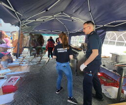 Die Kameraden der Freiwilligen Feuerwehr hatten die Mittagsverpflegung mit Bratwurst, Pommes und kühlen Getränken voll im Griff.