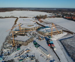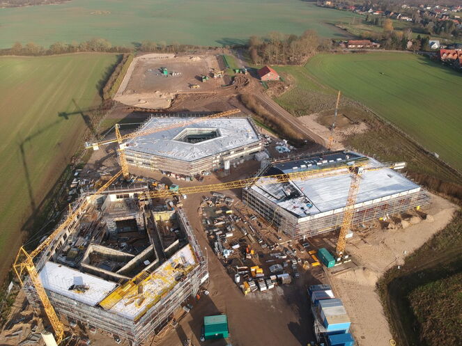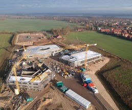 Die Grundschule/Hort wächst Zusehens empor. Das EG hat bereits zu 100 % seine Betondecke erhalten und im OG werden Innen- und Außenwände errichtet.
