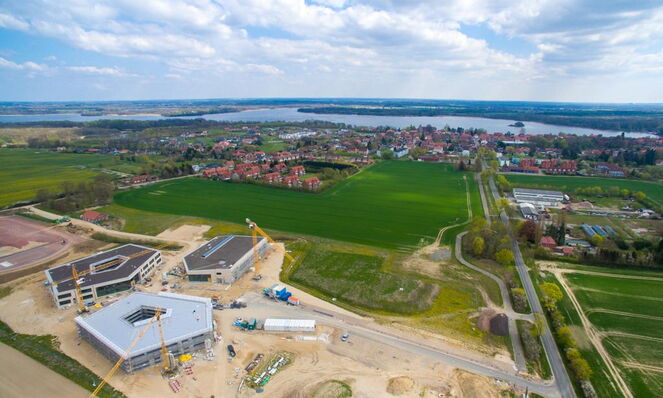 Im Bereich des zentralen Campusgeländes wurden die Arbeiten der technischen Erschließung fortgeführt. Derzeit erfolgt die Anbindung der Regenfallrohre der Regionalen Schule und der Zweifeldsporthalle an den Regenwasserkanal. In dem Zusammenhang hat der Aufbau des Geländes (+ 60 cm) begonnen. Die Verlegung der Medien Gas, Trinkwasser, Strom und Breitband (Leerrohre) ist etwas ins Stocken geraten, da die Baufreiheit in weiten Bereichen fehlt.