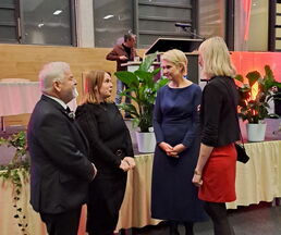 Im Schlusswort bedankt sich der Bürgermeister bei allen Mithelfern, die zum Gelingen des Neujahrsempfangs beigetragen haben, allen voran den Mitarbeitenden der Kulturabteilung, dem Bauhof, den Hausmeistern des Schulcampus, den flinken Damen und Herren vom See-Café Ickert für das phänomenale Catering, Herrn Jens Handke & Kollegen für den Sound, Diana Meyer vom Blumengeschäft „Blütenzauber Zarrentin“ für Dekoration und Blumensträuße, der Schaalsee-Kita für die liebevoll gestalteten Geschenke an die Gäste, der DLRG und Freiwilligen Feuerwehr Zarrentin für ihren Bereitschaftsdienst sowie der 12. Klasse des Gymnasialen Schulzentrums Wittenburg für ihre Unterstützung . Ebenso findet der Bürgermeister dankende Worte für den leider abwesenden Minister Dr. Till Backhaus und für die Ministerpräsidentin Manuela Schwesig für ihre immense Unterstützung bei der Entwicklung der Infrastruktur von Zarrentin am Schaalsee. Im Anschluss tritt die Ministerpräsidentin in den persönlichen Austausch mit den Gästen und steht gern für Fotos und Gespräche zur Verfügung. Der Abend klingt aus mit dem „Who is Who“ und anregenden Gesprächen.
