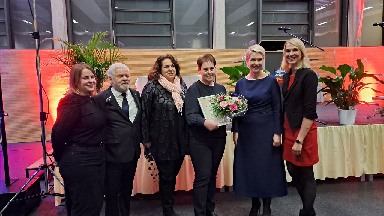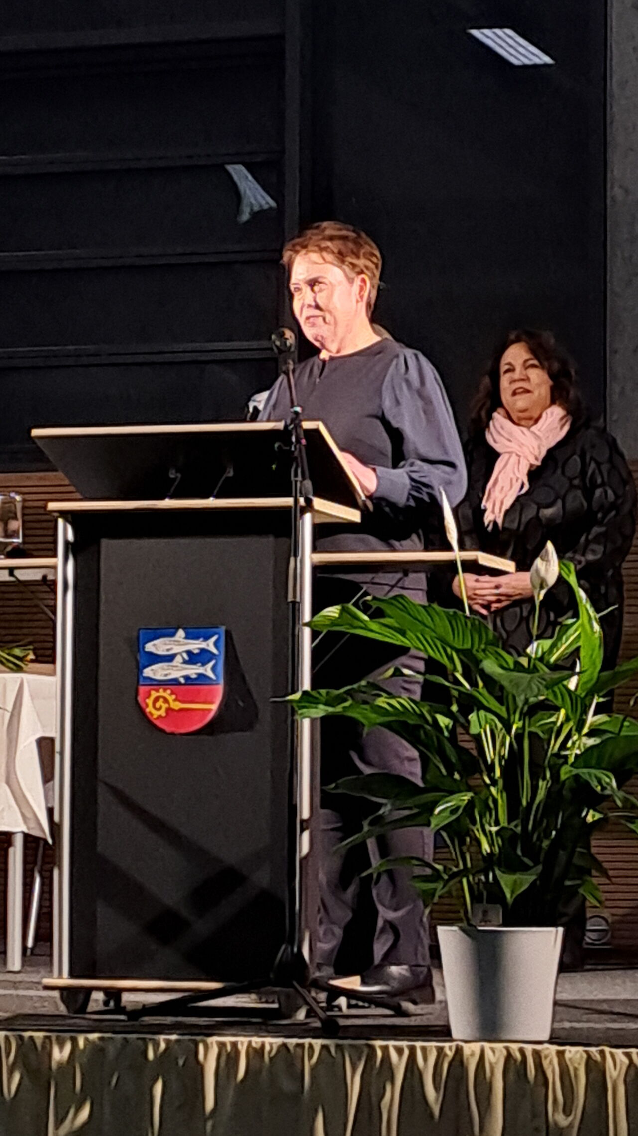 Die nächste Laudatio hält die Bürgermeisterin von Lübtheen, Frau Ute Lindenau. Sie erzählt vom Lebensweg der nächsten Ehrenbürgerin, ihrem jahrelangen Wirken zum Wohle der Kinder und Jugendlichen und schließlich vom Bau der Schaalsee-Kita. Frau Eilyn Brockmöller, Geschäftsführerin des JAW e. V., ist die zweite Ehrenbürgerin. Mit dem Bau der Schaalsee-Kita ist ihr ein weiteres Glanzstück für die Betreuung der jüngsten Einwohner Zarrentins und Ortsteile gelungen.