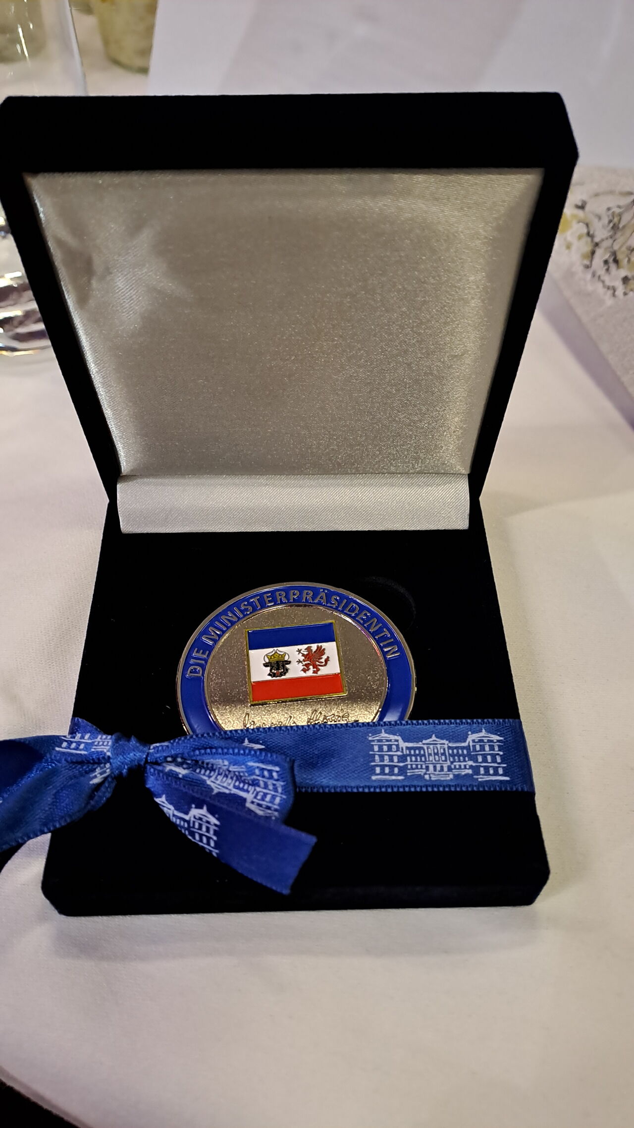 Im Anschluss greift Frau Ministerpräsidentin Manuela Schwesig diese Themen auf und würdigt den tatkräftigen Einsatz der Ehrenamtlichen im gesellschaftlichen Leben – von Menschen, die anpacken und Dinge bewegen. Sie verweist dabei auf den Schulcampus als Beispiel für den Einsatz des ehrenamtlichen Bürgermeisters Klaus Draeger und stellt mit Freude fest, dass aus einer Idee ein Bauwerk für über 500 Kinder entstanden ist – mit modernsten Bedingungen für ihre Schulbildung. Und nun findet hier bereits zum dritten Mal in Folge der Neujahrsempfang statt. Zarrentin hat in vielerlei Hinsicht eine Vorreiterrolle, was maßgeblich dem engagierten Bürgermeister Klaus Draeger zu verdanken ist. Seine herausragende Arbeit, auch unter schwierigen Bedingungen, wird mit dem Ehrenorden der Ministerpräsidentin gewürdigt. Sichtlich bewegt und überrascht nimmt Klaus Draeger diese Ehrung entgegen. Auch hier zeigt sich erneut: „In Dir muss brennen, was Du in anderen entzünden willst“ (Augustinus von Hippo).