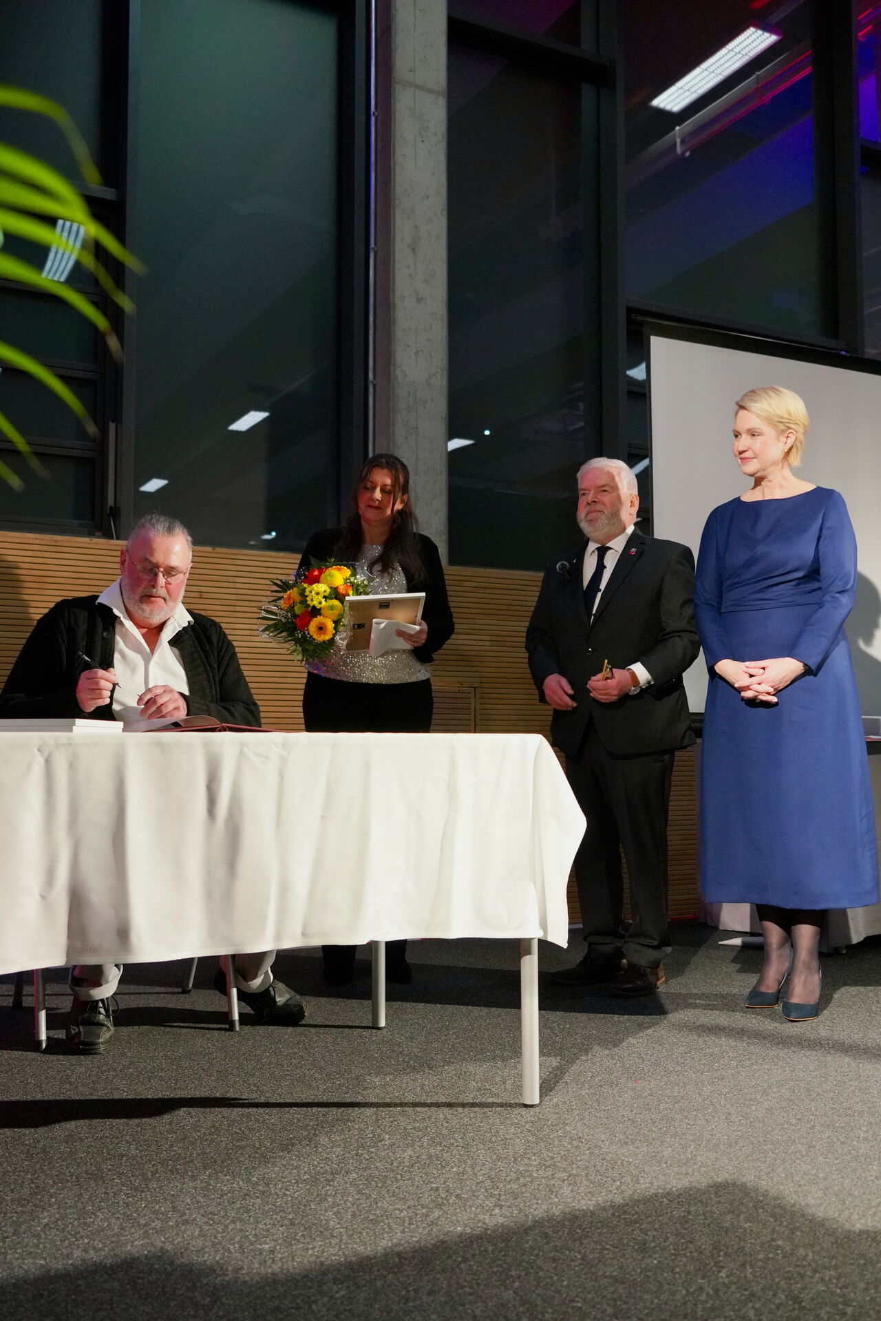 Alle guten Dinge sind drei, und so hält Frau Susan Mett ihre Laudatio auf den dritten Ehrenbürger, Oliver Mumme, der sich über viele Jahre in Kinder- und Jugendprojekten engagiert und sich als Geschäftsführer der Betriebsstätte JYSK in Zarrentin als verlässlicher und loyaler Partner der Stadt erwiesen hat. Hier sei nochmals erwähnt, dass großzügige Sponsoring-Aktionen – unter anderem auch in Bezug auf die Tafel in Zarrentin – auf sein Bestreben hin verwirklicht werden konnten. Für die Gratulation aller Ehrenbürger dieses Abends konnten wir Frau Ministerpräsidentin Manuela Schwesig gewinnen. Sie zeigt sich sehr erfreut über die Möglichkeit, den neuen Ehrenbürgern persönlich zu gratulieren und ihren Einsatz zu würdigen.