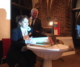Für ihre vielen Ehrenämter unter anderem den Vorsitz im Gewerbe- und Tourismusverein, Jugend- und Kínderbetreuung und das Engagement in der Stadt über die Aufgabenfeld hinaus, durfte sich Natalie Niehus in das goldene Buch der Stadt eintragen. Die beiden Kollegen hatten kein bisschen Vorahnung von der Ehrung und es floss die ein oder andere Träne auch bei den Gästen.