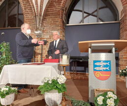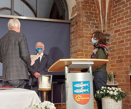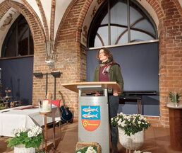 Die neue Leiterin vom Amt für das Biosphärenreservat Schaalsee-Elbe, Anke Hollerbach trägt die Laudatio für den Ehrengast Klaus Jarmatz vor. Frau Hollerbach löste Klaus Jarmatz Anfang des Jahres, nach 30 Jahren in der Führungsposition ab und freut sich über eine gute Zusammenarbeit mit der Stadt Zarrentin.