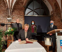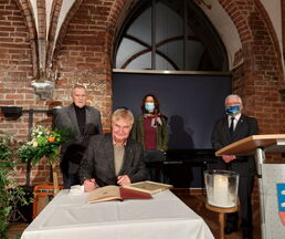 Der Bürgermeister, seine zwei Vertreter, der Ehrengast und die Band durften auf Grund der hohen Hygieneauflagen nicht gleichzeitig im Refektorium des Zarrentiner Klosters sein. Nur so wird eine Begrüßung für alle Bürgerinnen und Bürger zum neuen Jahr möglich. Die Zarrentiner Coverband „Churchlake“ hatte ihren ersten Auftritt vor laufenden Kameras. Klaus Draeger ist stolz, wieder Künstler aus unserer Schaalseestadt auf der Bühne im Zarrentiner Kloster zu begrüßen. Am Donnerstag ab 19.00 Uhr können Sie an dieser Stelle dabei sein und das komplette Programm von zu Hause aus genießen.