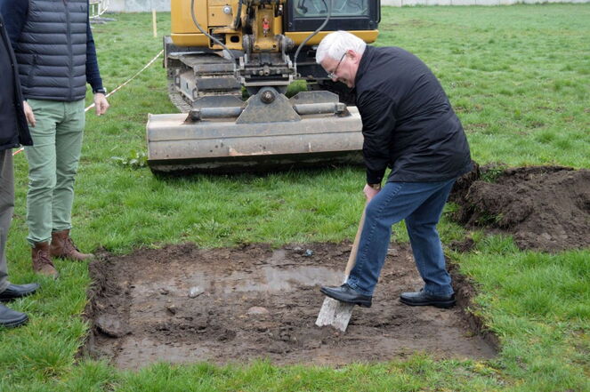 Symbolisch setzte Klaus Draeger den Spaten an, soll es doch schon in wenigen Wochen losgehen mit dem Bau des neuen Gebäude. Zuerst muss noch der Boden auf eventuelle Baudenkmäler untersucht werden, aber dann geht es los. Praxisgemeinschaft Prösch / Pohlmann wird die Räumlichkeiten nach Fertigstellung beziehen. Im Unteren Bereich wird sich die Schaalsee - Apotheke einrichten.