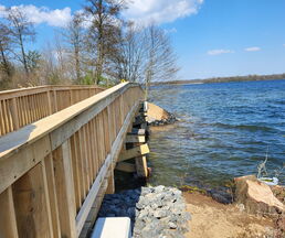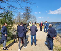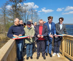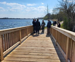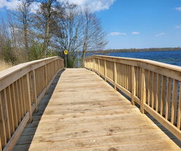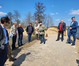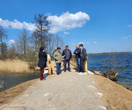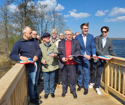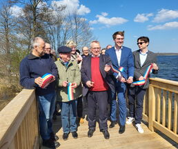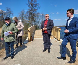 Zur Eröffnung darf die Amtsverwaltung natürlich auch nicht fehlen. So freute es den Bürgermeister, die leitende Verwaltungsbeamtin Jutta Piontek und aus dem Bauamt, Norman Thorn und Stefanie Schilling zu begrüßen. Herr Wessels von der Umweltplanung und für die ökologische Baubegleitung zuständig und Herr Deuill von der Firma IBD aus Raben Steinfeld, der für die Planung des Projektes zuständig war, erläuterten Details zum Bau und betonten, dass die Widerlager aus Stahlbeton und der Überbau aus Eiche wohl viele Jahre ihre Dienste tun werden.