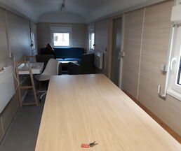 Die Firma HGL aus Bobzin fertigte den Bauwagen, der Bauhof des Amtes Zarrentin transportierte ihn nach Zarrentin und die Firma dänisches Bettenlager richtete ihn für uns ein.
