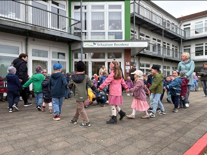 Im Anschluss suchten die Kita-Kinder im Garten der Schaalseeresidenz nach vom „Osterhasen“ versteckten Süßigkeiten. Der schon zur Tradition gewordene Besuch der Anbau-Kinder unserer Kita im Seniorenheim brachte allen viel Spaß.