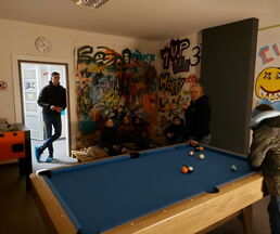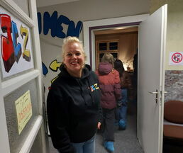 Nicole Groth, Leiterin vom Jugendclub begrüßte die Wismarer Gäste und präsentierte ihre Räumlichkeiten.