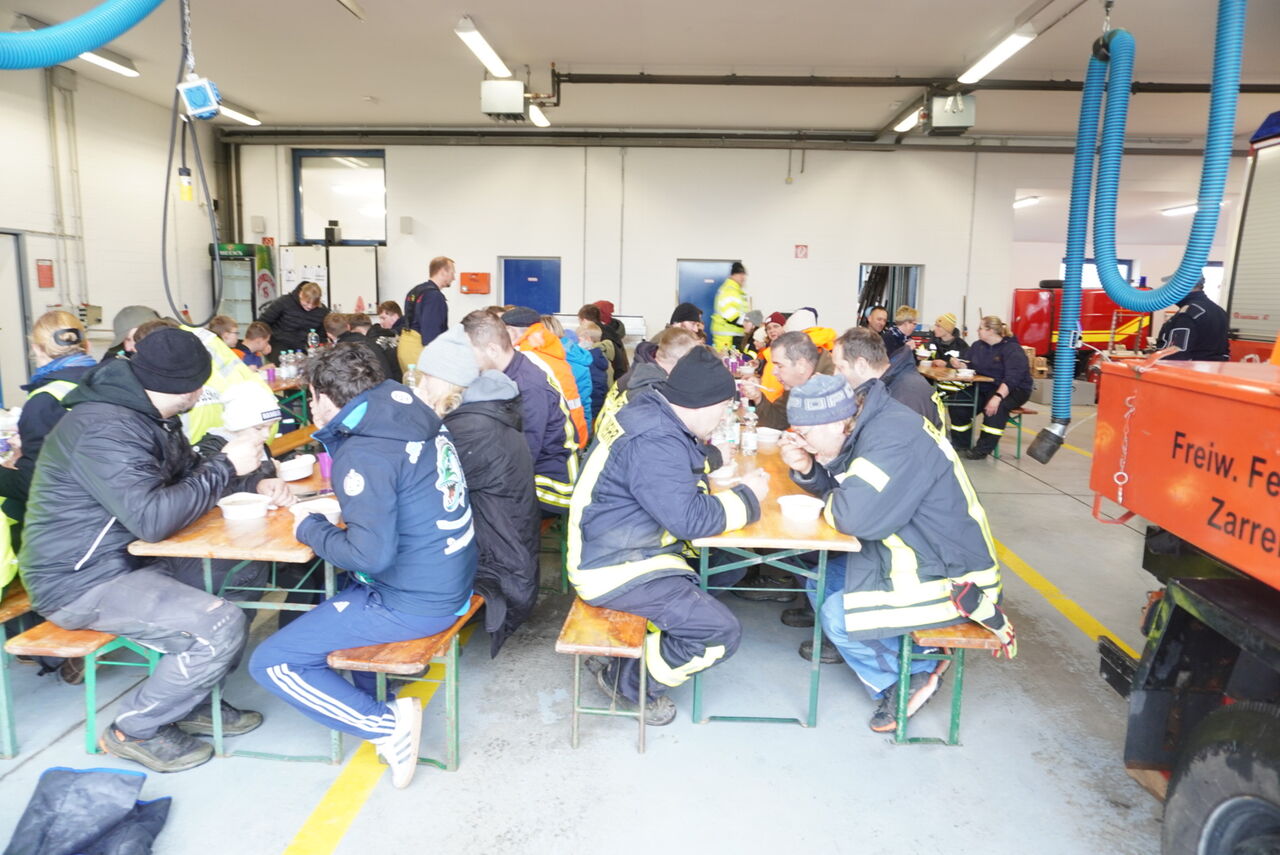 Zum Abschluss wartete auf alle Helferinnen und Helfer eine wohlverdiente Stärkung: Die Feuerwehr lud traditionsgemäß zu einer kräftigen Erbsensuppe aus der Gulaschkanone ein. Feuerwehrkamerad Bernd Schwan übernimmt diesen schmackhaften Dienst bereits seit über 20 Jahren – und steht dafür jedes Jahr in aller Frühe für die Vorbereitungen auf.