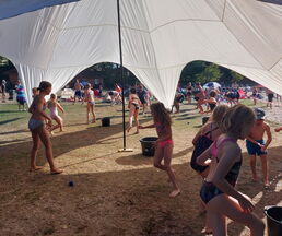 Die Jugendclubleiterin hatte ein paar sportliche Aktionen im Gepäck und bei der großen Challenge, Alt gegen Jung, sahen die Eltern am Ende ziemlich nass aus!