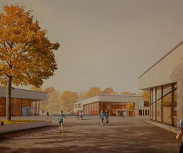 Am zukünftigen Übergang von Stadt und Landschaft entsteht auf einem rund 7 ha großen Areal mit dem "Neuen SchulCampus" Zarrentin ein Ensemble aus Regionaler Schule, Grundschule mit Hort und Zweifeldsporthalle mit Mensa.