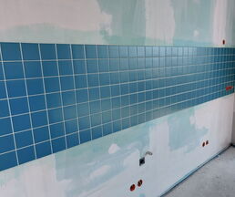 In der Grundschule ist der Einbau der Wand- und Bodenfliesen abgeschlossen, der Trockenbauer hat mit den Akustikdecken in den Fluren begonnen. Die Haustechnikgewerke haben Ihre Rohinstallationen beendet. Die Installationen der Innentüren und des Linoleum-Bodenbelags verlaufen nach wie vor.