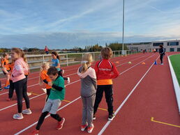 Die Haustechnikgewerke haben Ihre Rohinstallationen fast abgeschlossen. Die Installationen der Innentüren und des Linoleum-Bodenbelags sind gestartet. In den Außenanlagen werden die zukünftigen Gehölz- und Rasenflächen Zug um Zug grob planiert und es erfolgt der Wiedereinbau des vor Baubeginn flächig abgeschobenen Oberbodens. Im Bereich der Grundschule werden die letzten Leerrohre und die Stromleitungen für die Außenbeleuchtung verlegt. Die Sportplatzerweiterung, Umbau eines „Bolzplatzes“ zur „Kampfbahn Typ C“ ist fertiggestellt und vollständig abgenommen. Die Leichtathleten und Fußballer haben den Trainings- und Spielbetrieb aufgenommen.