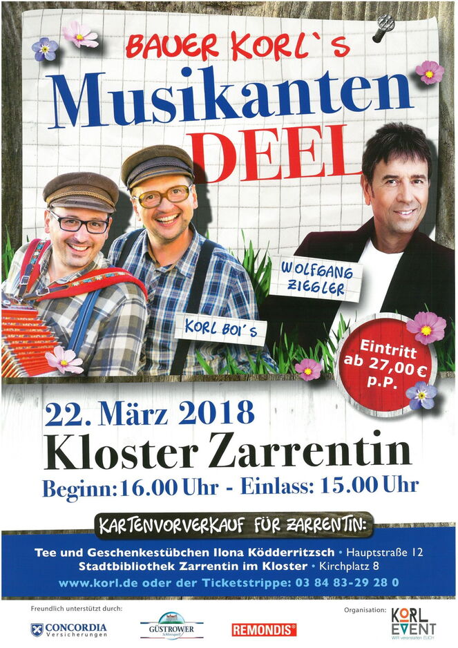 Kartenvorverkauf Bibliothek Zarrentin, Kirchplatz 8Tee- und Geschenkestübchen Ilona Ködderitzsch, Hauptstraße 8