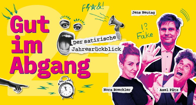 In ihrem neuen Programm „Gut im Abgang“ erinnern sie an die Themen, die man zu Recht vergessen hat, und würdigen alles, was in naher oder ferner Zukunft in den Geschichtsbüchern stehen wird. Es wird gelästert, getanzt und gesungen – nach allen Regeln der Kabarett-Kunst gibt die DISTEL dem Jahr 2024 den Rest, wobei natürlich der wichtigste Grundsatz lautet: Langweilen verboten!