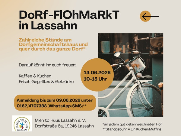 Anmeldung bis zum 09.06.2026 unter 0162 4707398 beim Mien to Huus Lassahn e.V.