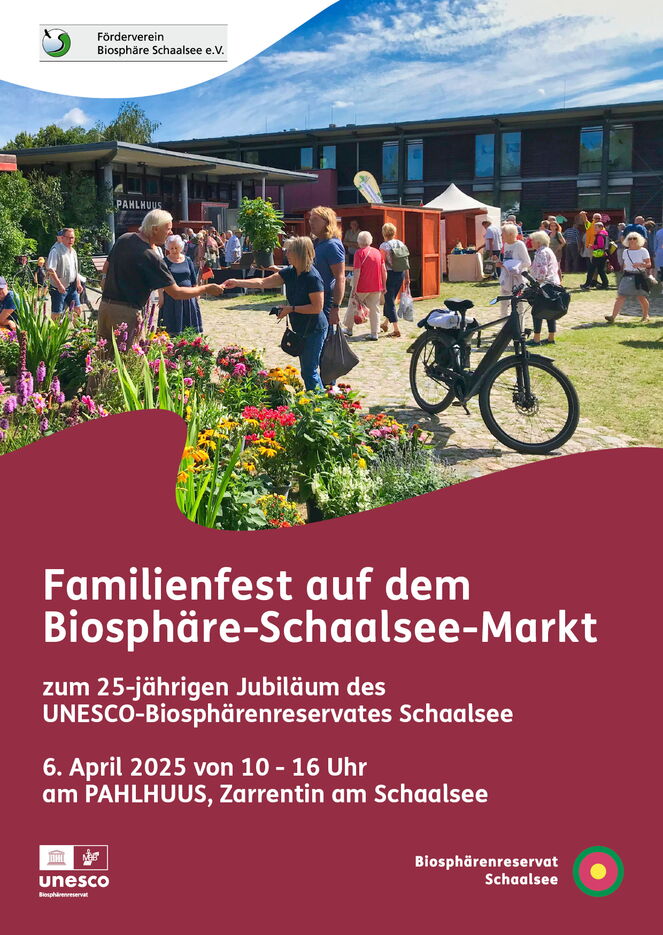 Am Sonntag, den 6. April ist es soweit. Dann startet die Marktsaison am PAHLHUUS. Der Biosphäre-Schaalsee-Markt öffnet wieder jeden ersten Sonntag in den Monaten April bis November am Informationszentrum in Zarrentin am Schaalsee. 45 Produzenten und Produzentinnen aus der Region bieten das Jahr über landwirtschaftliche Produkte, Lebensmittel, Kunsthandwerk und vieles mehr an. Zugleich wird ein wichtiges Jubiläum mit vielen Aktionen gefeiert. Vor 25 Jahren hat die UNESCO das Biosphärenreservat Schaalsee international anerkannt. Seitdem gehört es zum internationalen Netzwerk von derzeit 759 Biosphärenreservaten in 136 Ländern der Welt.