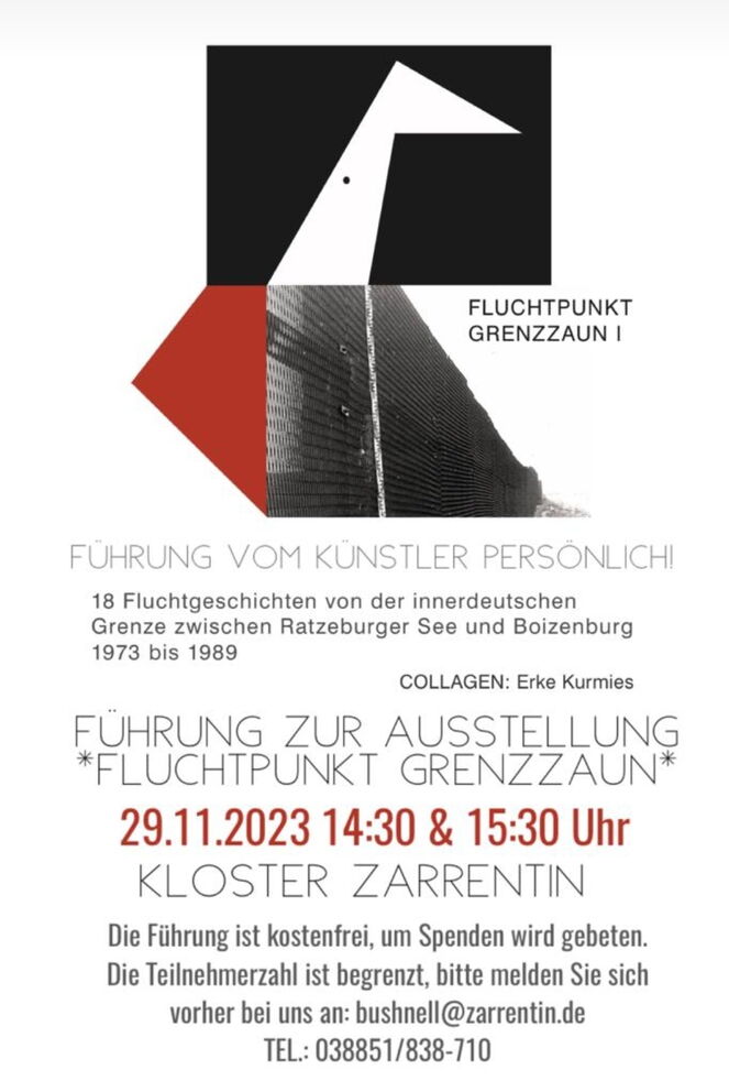 bis zum 29. November können Sie täglich zu den Öffnungszeiten des Klosters 18 Fluchtgeschichten von der innerdeutschen Grenze zwischen Ratzeburger See und Boizenburg von 1973 bis 1989 erleben.