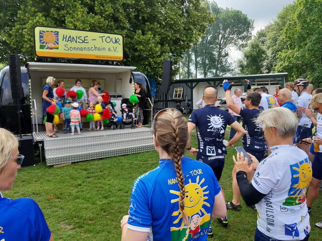 Es wäre uns eine große Freude, wenn sich Firmen, Vereine und Schulen aus Ihrer Gemeinde auch vor der diesjährigen Tour für die gute Sache engagieren und im Vorfeld wieder eine kleine Spende für den guten Zweck einsammeln würden; sei es durch einen Kuchenbasar, ein Sportfest, eine Tombola, ein Firmenfest oder andere kreative Projekte - die Hanse-Tour Sonnenschein lebt vom Mitmachen. Jede Summe, egal ob klein oder groß, zählt und schafft Motivation im Fahrerfeld. Die Übergabe durch einen Vereins- oder Stadtvertreter oder die Schüler selbst wäre dann ein sehr schöner Programmpunkt während unseres Aufenthalts.