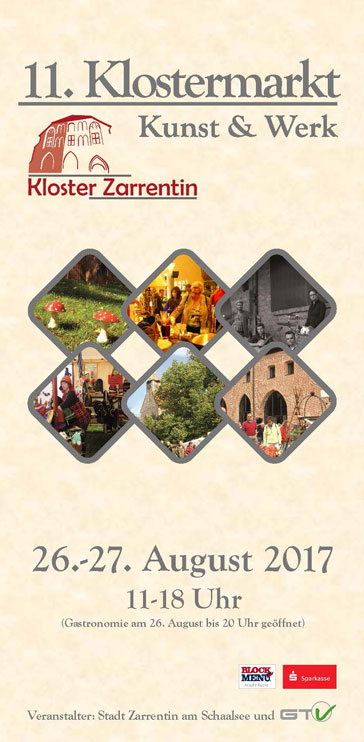 Am 26. und 27. August 2017 findet der 11. Klostermarkt „Kunst & Werk“ mit 100 Ausstellern in Zarrentin am Schaalsee statt. Kreatives Mode- und Schmuckdesign, vielseitige Keramik, Gartenaccessoires, Malerei, Glas–, Holz und Metallkunst gehören zu dem Angebot. Die Produkte stammen überwiegend aus eigener handwerklicher Herstellung. Abwechslungsreiches Essen und erfrischende Getränke werden ebenfalls angeboten, am Samstag sogar bis in den Abend hinein (bis 20 Uhr). Für Unterhaltung sorgen Musikgruppen.