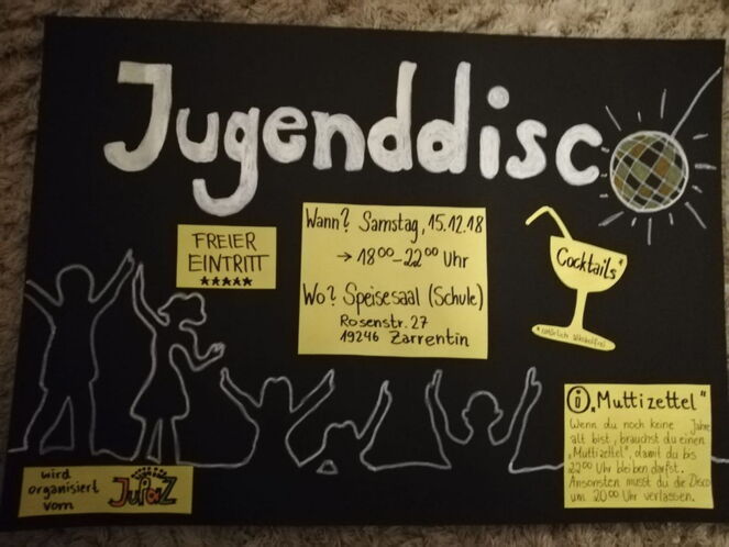 Am Samstag von 18.00 bis 22.00 Uhr sind unsere Kinder gefragt und rocken in der Schulküche. Der Eintritt ist frei!!! Leckere Cocktails für 2,00€ und Softdrinks für 1,00€ hält unser Jugendparlament für Euch bereit.