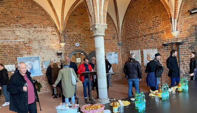Die Klosterwände im Kreuzgang sind quasi eine Erweiterung der Werke, fast, es wäre es kein Zufall. Aber ebenso ist es, denn die gebürtige Kanadierin lebt und malt in Spanien und hat sich mit Ihrer Kunst auf den langen Weg nach Zarrentin begeben, ohne die Location vorher gekannt zu haben. „Es ist wie im Traum hier, die Schatten und das Licht, alles ist magisch“.