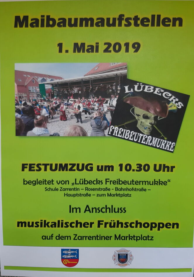 - Ab 10:30 Uhr: Festumzug mit „Lübecks Freibeuter Mukke“ – Der Umzug beginnt um 10:30 an der Fritz-Reuter-Schule in der Rosenstraße und endet um ca 11:00 Uhr auf dem Marktplatz.