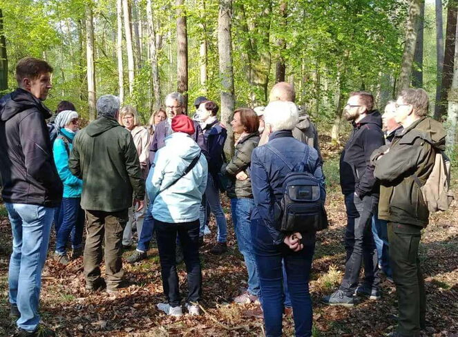 Foto: Ornithologische Führung mit Rolf Ziebarth, Förster a.D., im Schalißer Wald bei Zarrentin am Schaalsee. Foto: Peter Reißig