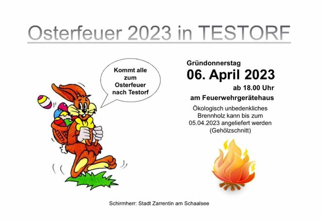 Ab 18.00 Uhr Feuerwehr Testorf. Für das leibliche Wohl ist gesorgt.