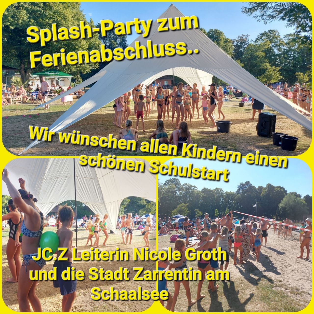 Ein wilde Wasserschlacht zu fetziger Musik am Badestrand. Der Jugendclub JC.Z mit Nicole Groth und das Jugendparlament verabschieden die Sommerferien mit der lustigen Wasserschlacht am Badestrand.