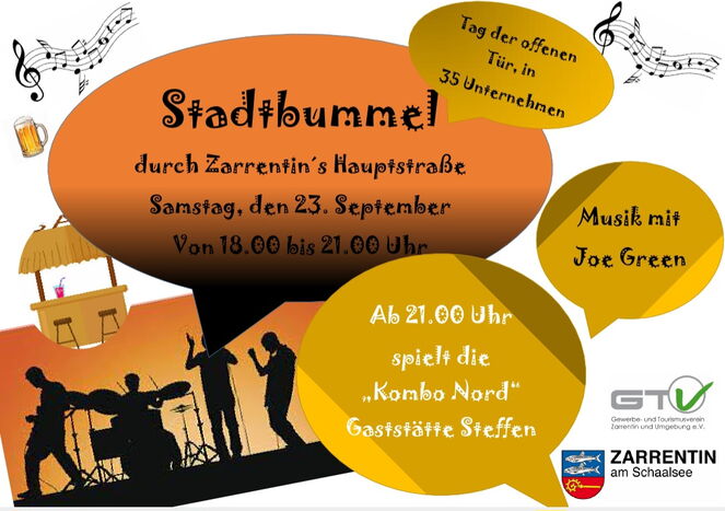 Gittarist und Sänger Joe Green unterhält bis 21.00 Uhr in der Hauptstraße, ab 21.00 Uhr heizt die Band "Kombo Nord" bei Gaststätte Steffen ein.
